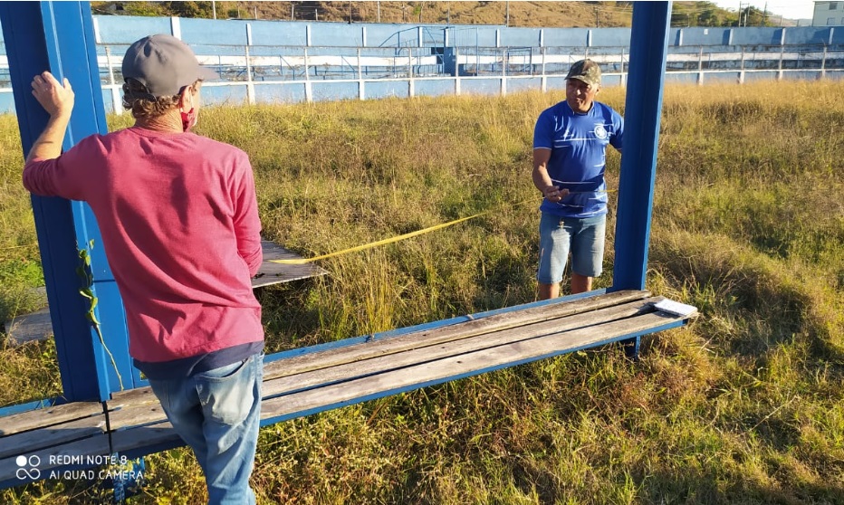 "Consegui o pedreiro de graça. Duas pessoas estão pagando o ajudante e a empresa que está fazendo a obra no estádio me doou o material. Só precisamos conseguir agora uma empresa para patrocinar o alongamento do banco, porque terá mais uma fila de cadeiras na parte de trás e o acrílico pra tampar atrás. Além disso, Dois minicampos serão construídos atrás dos gols para treinamentos reduzidos e de goleiros".